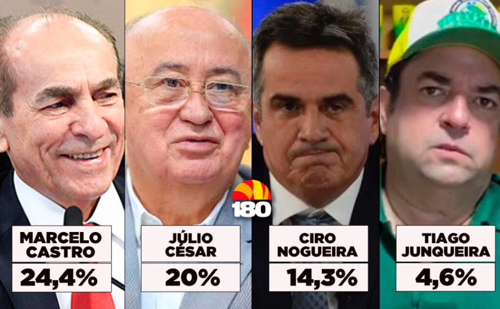 O levantamento mostra Marcelo Castro com 24,4% das intenções de voto e Júlio César com 20%. O senador Ciro Nogueira, do Progressistas, aparece com 14,3%, e Tiago Junqueira, do PL, com 4,6%.